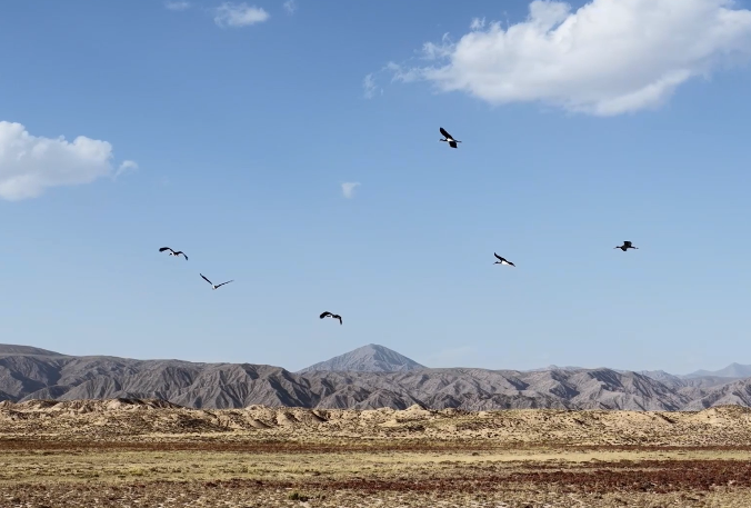 青海:國家一級重點保護動物黑鸛首次現身烏蘭縣