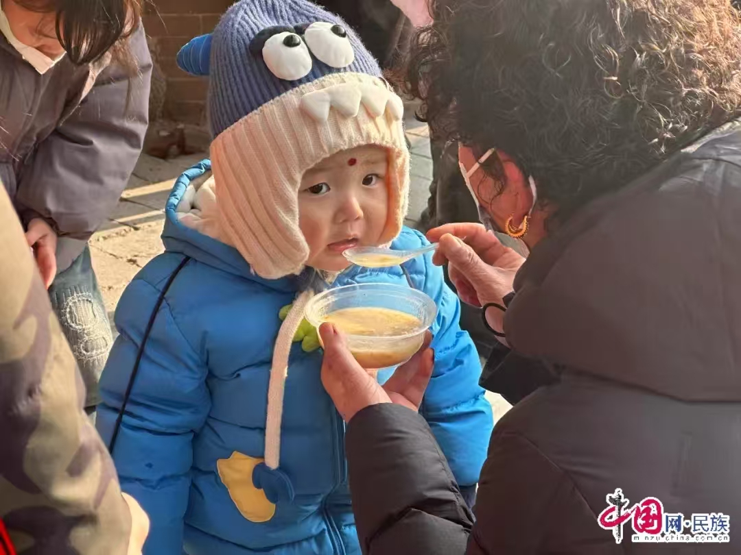 迎春門旁,一口大鍋成為了焦點,鍋內蒸煮的青海特色粥香氣撲鼻。游客們紛紛圍聚,一人一杯,品嘗著這一飽含地方特色的美食,粥中麥粒飽滿、肉糜軟爛,回味悠長。古城內沿街的小吃商鋪也積極參與,現場熬制臘八粥,同時還提供南京甜口臘八粥,讓游客們在品嘗中感受不同地域美食文化的碰撞。