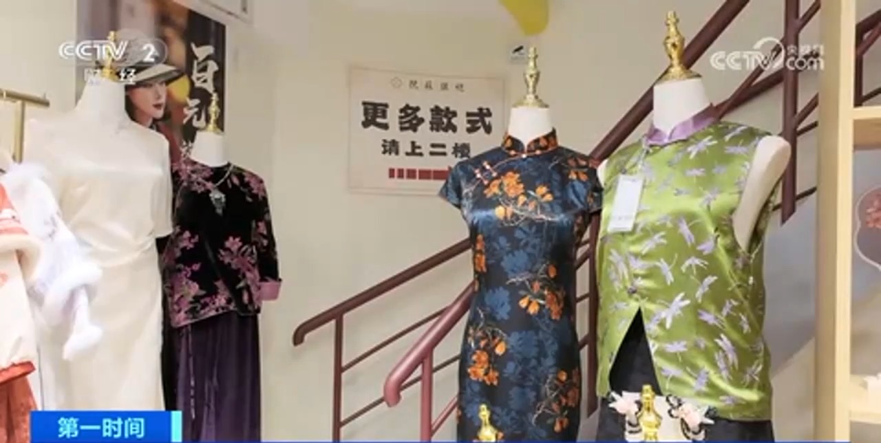 旗袍店店長表示,最近幾個月由于外國游客增多,許多外國客人來體驗穿中國旗袍,也帶動了門店銷量增長。
