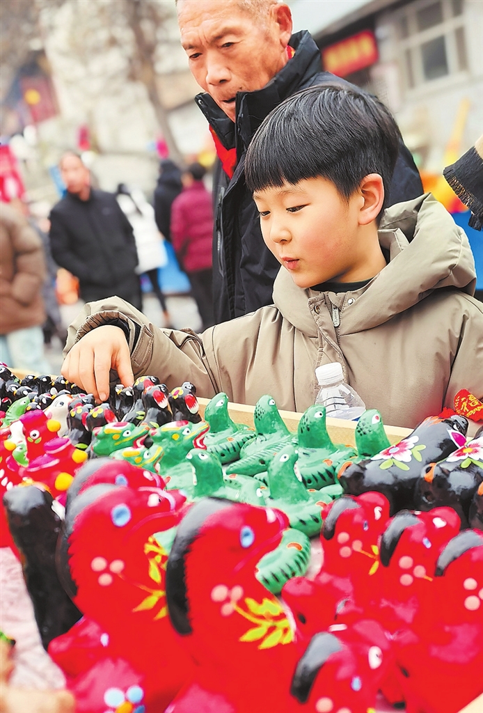 2月1日,在??h古城集市上,泥咕咕琳瑯滿目,十分討人喜歡。劉澔澤攝