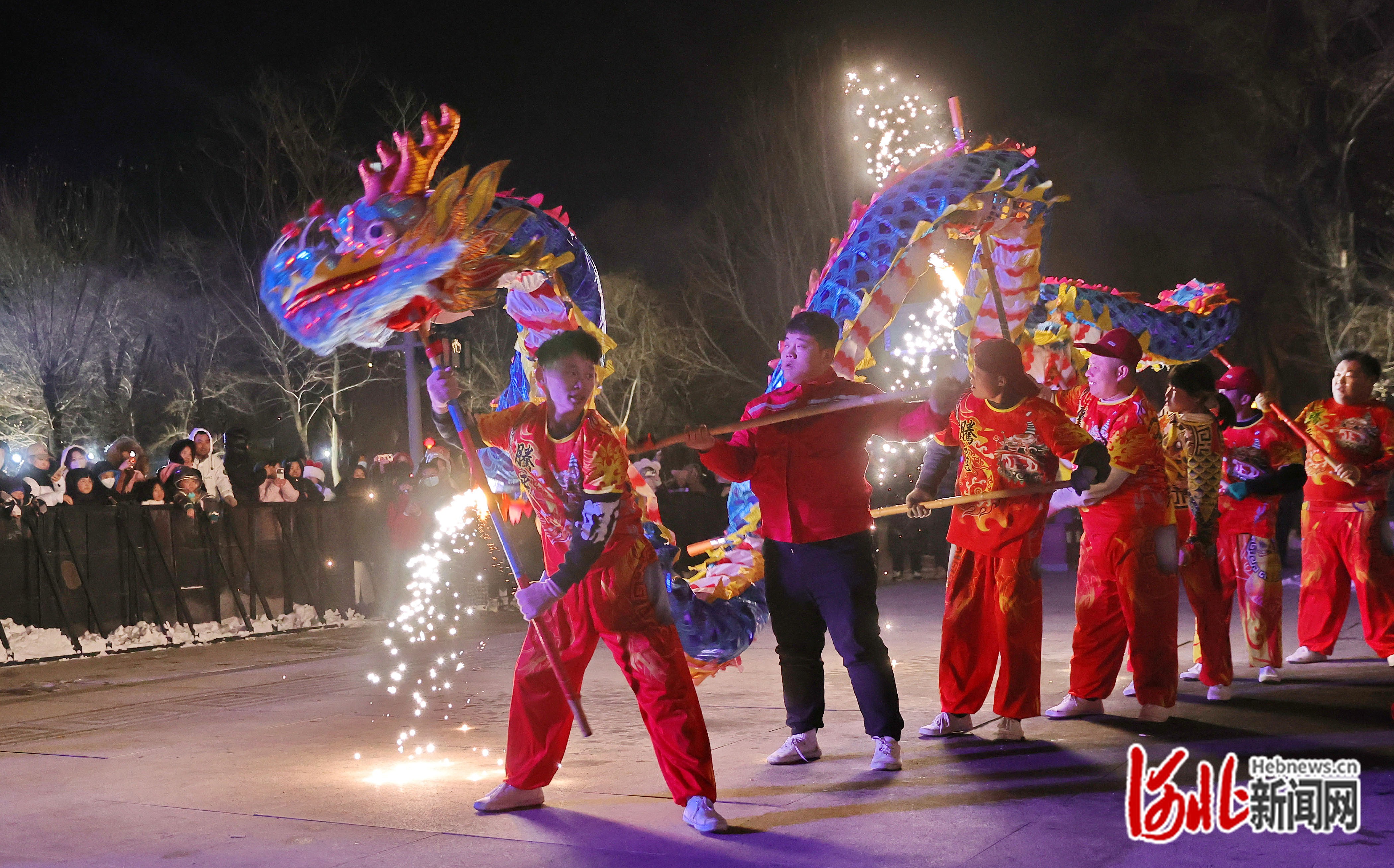 1月31日,民間藝人在秦皇島市海港區秦皇求仙入海處景區為游客表演傳統舞龍燈。河北日報記者趙杰攝