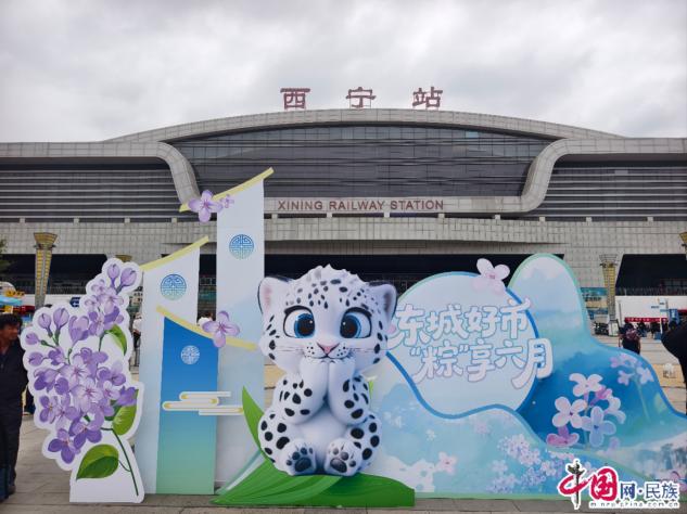 活動現場采用“雪豹+”宣傳模式,將“雪豹吃粽子”形象與丁香花元素融入蘭青底色設計,展現西寧文化魅力。啟動儀式吸引大量來往旅客及群眾駐足,現場座無虛席,歡呼聲不斷。