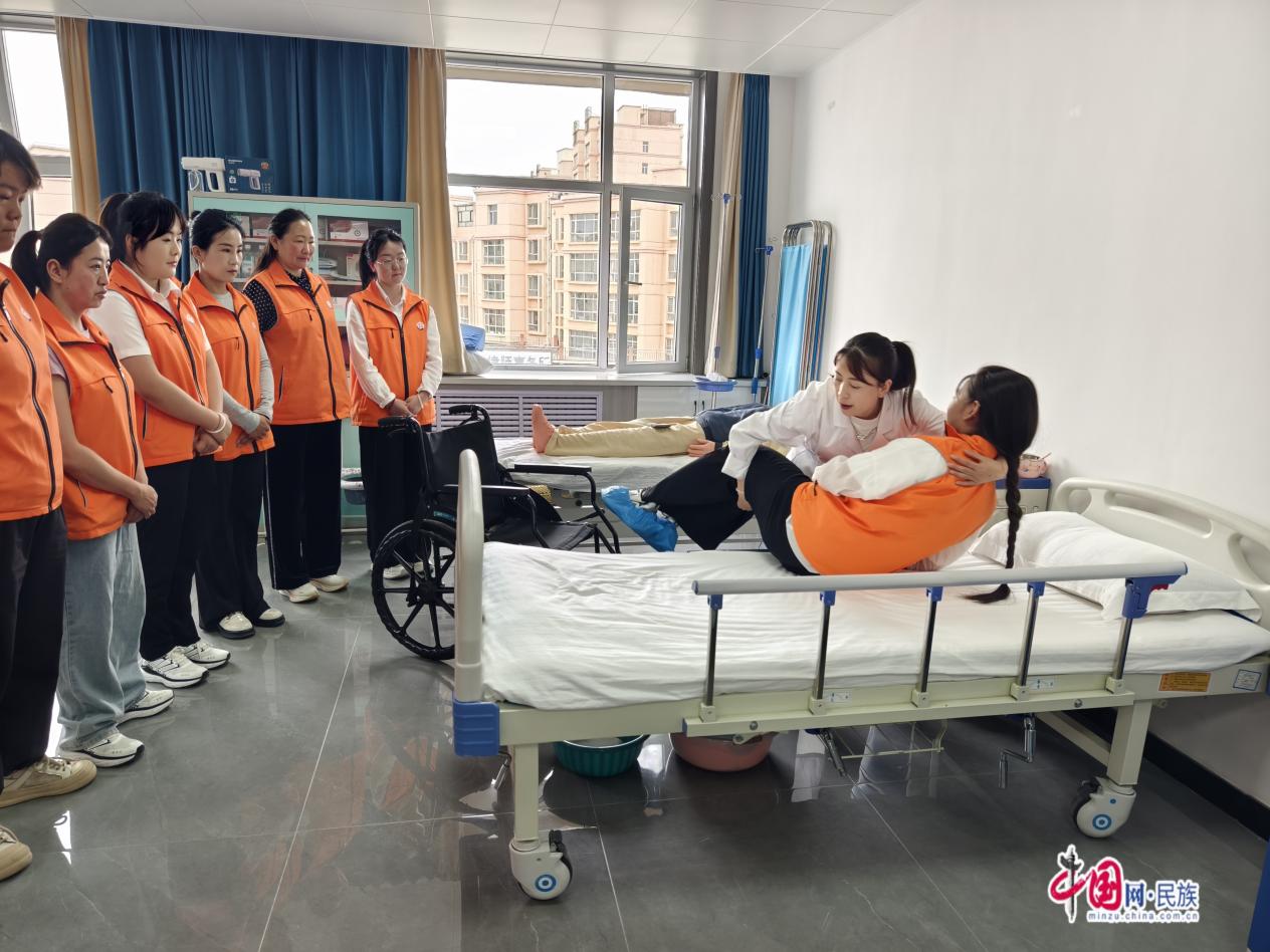 “大家在給老年人做護理時一定要做到小心、細致,要注意和他們交流,緩解他們的心理壓力……”培訓部帶班班主任費他義花正在給學員講解相關知識,并通過實操的方式讓大家深刻理解。