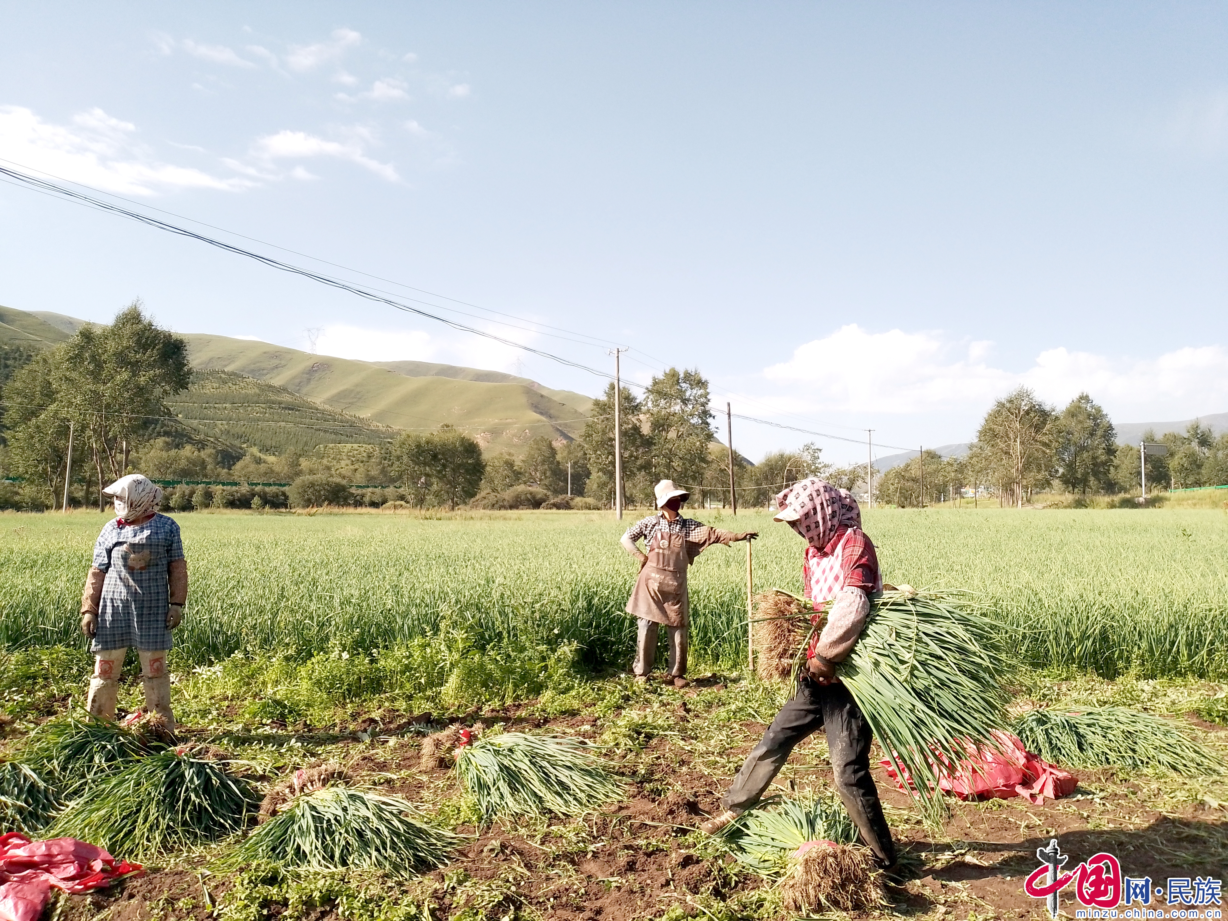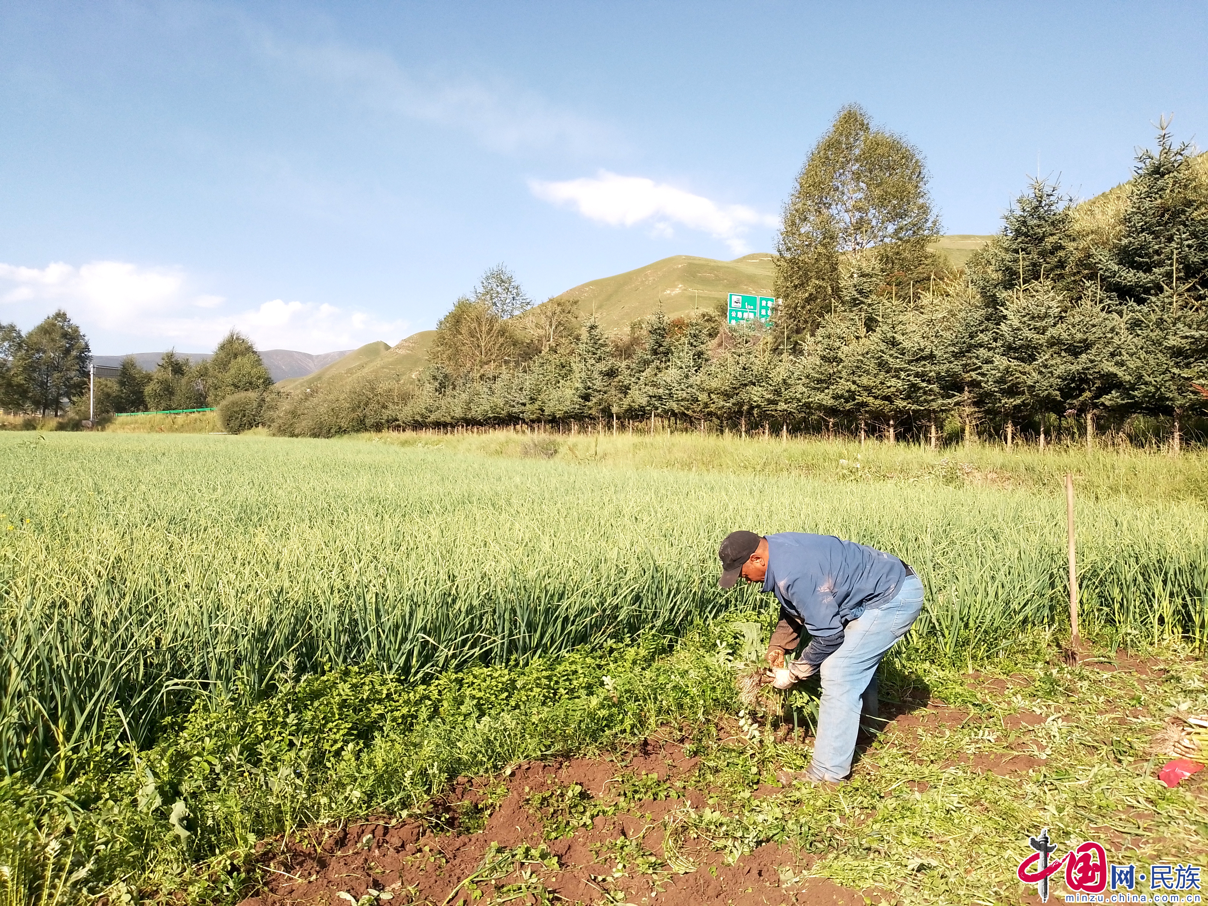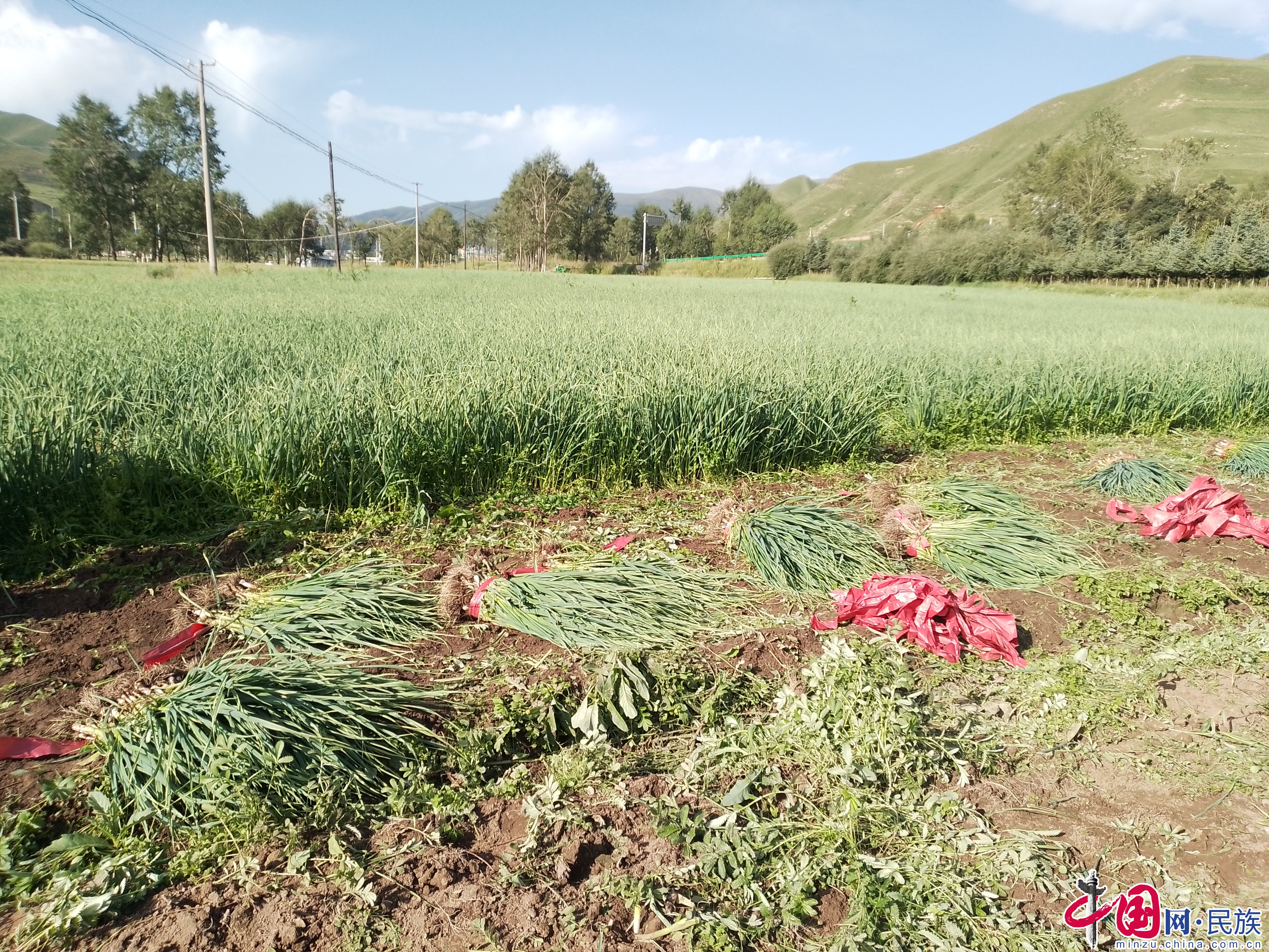 當地群眾在蒜苗地勞作。蔡得軍攝