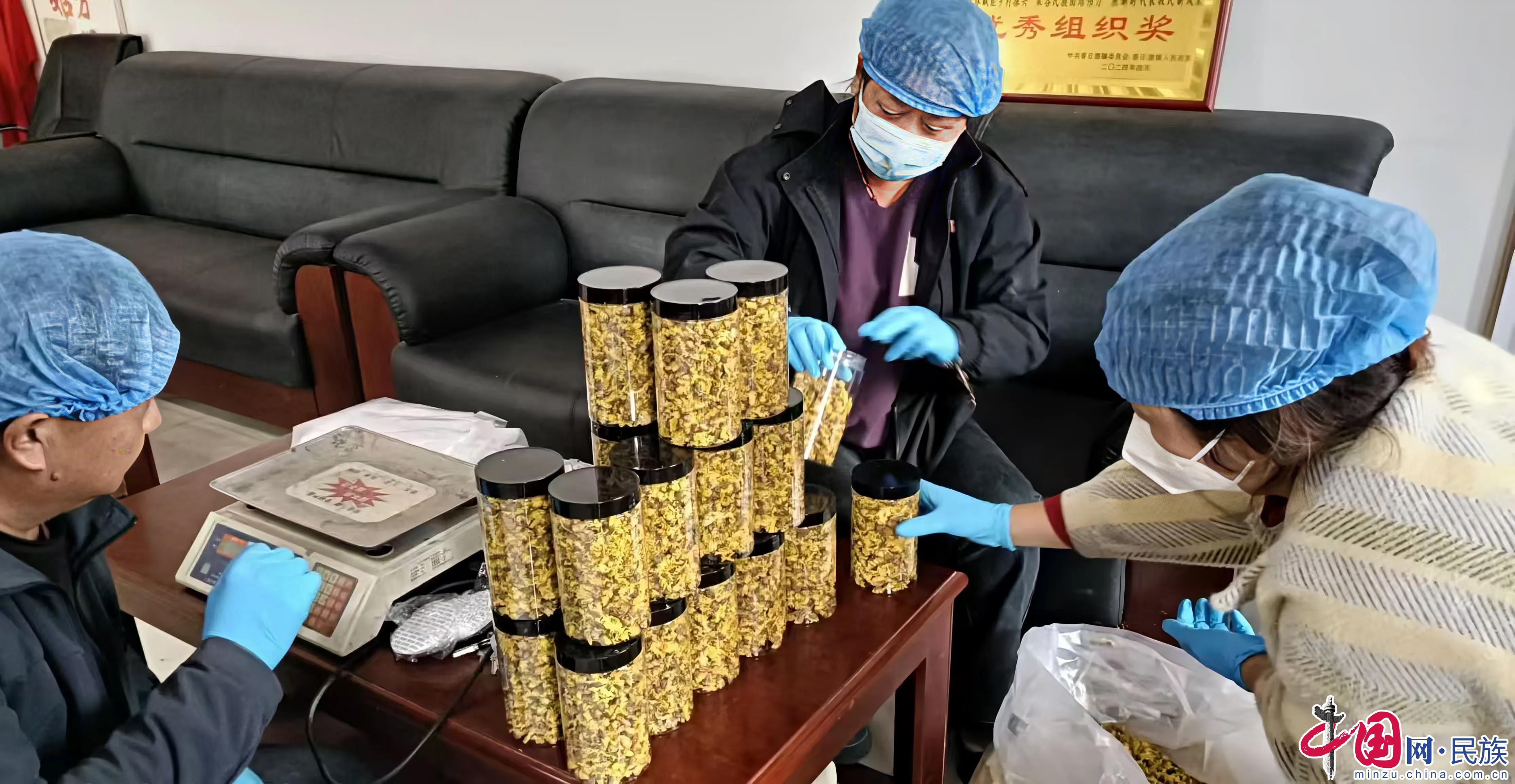 稱重包裝杭白菊。都蘭縣委宣傳部供圖