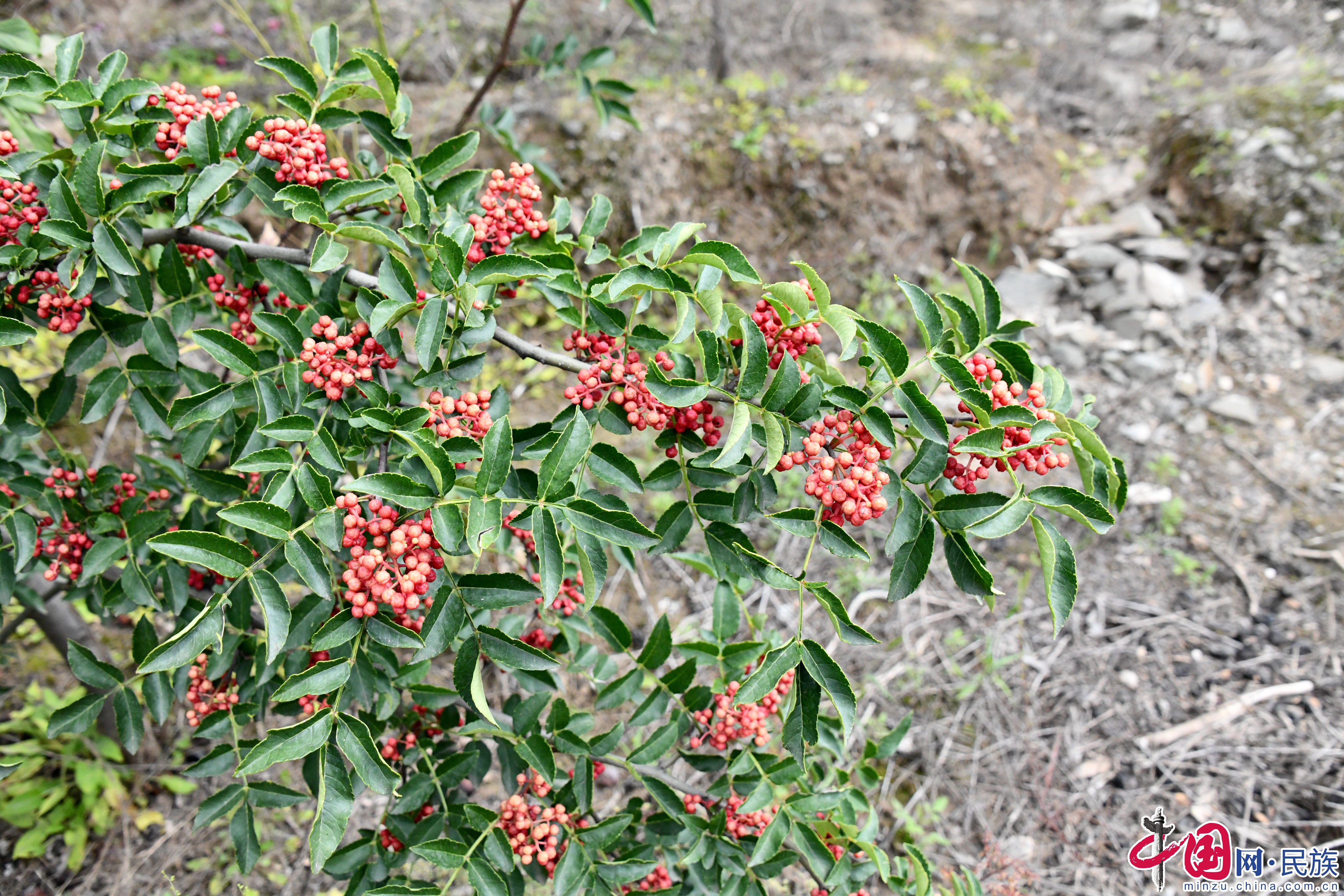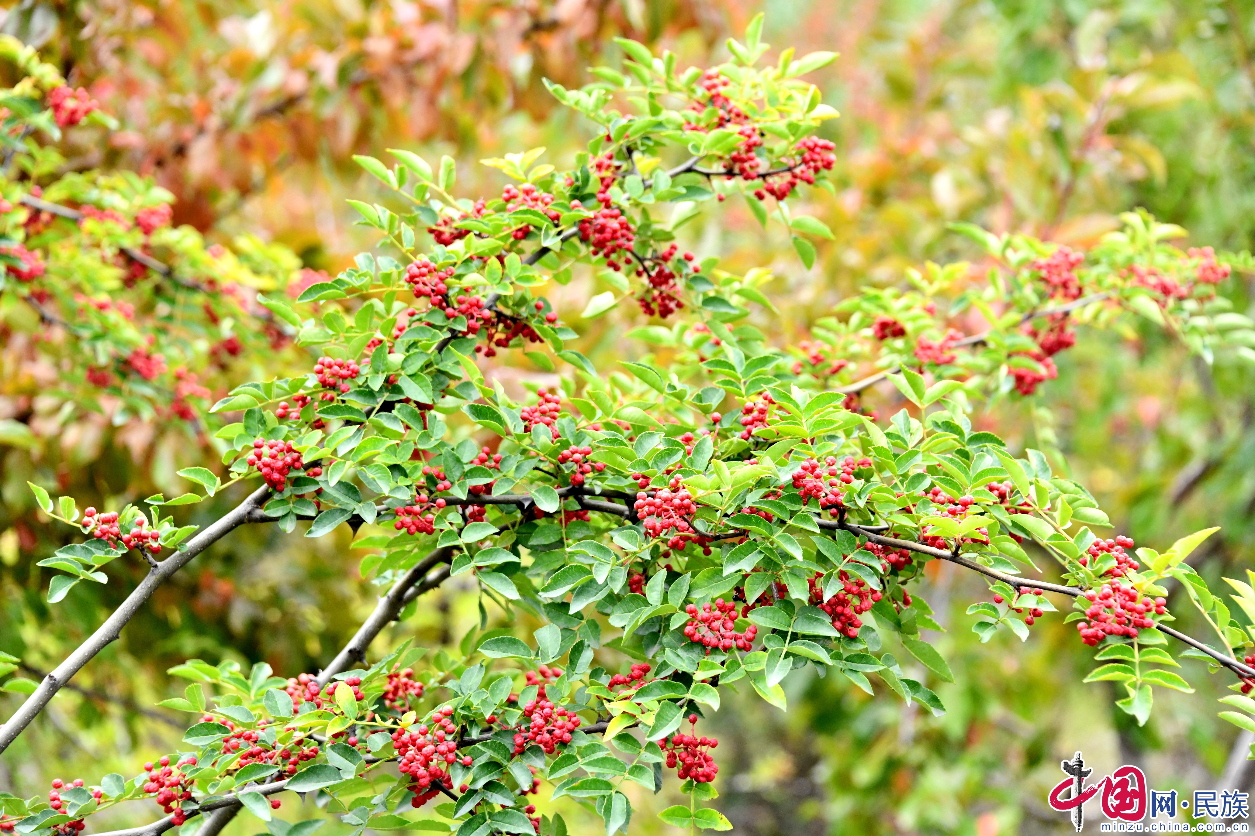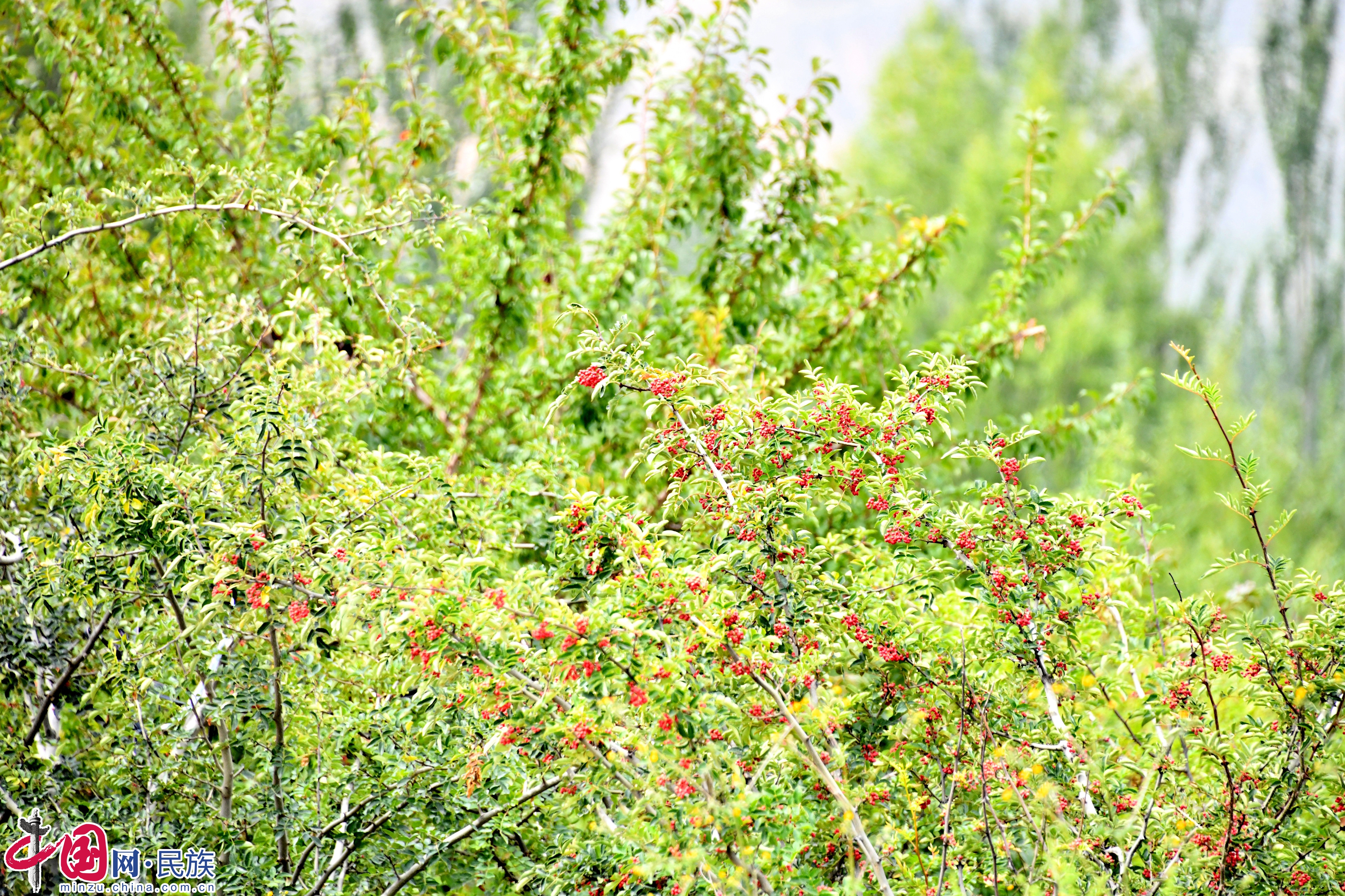 火紅的花椒綴滿枝頭。蔡得軍攝