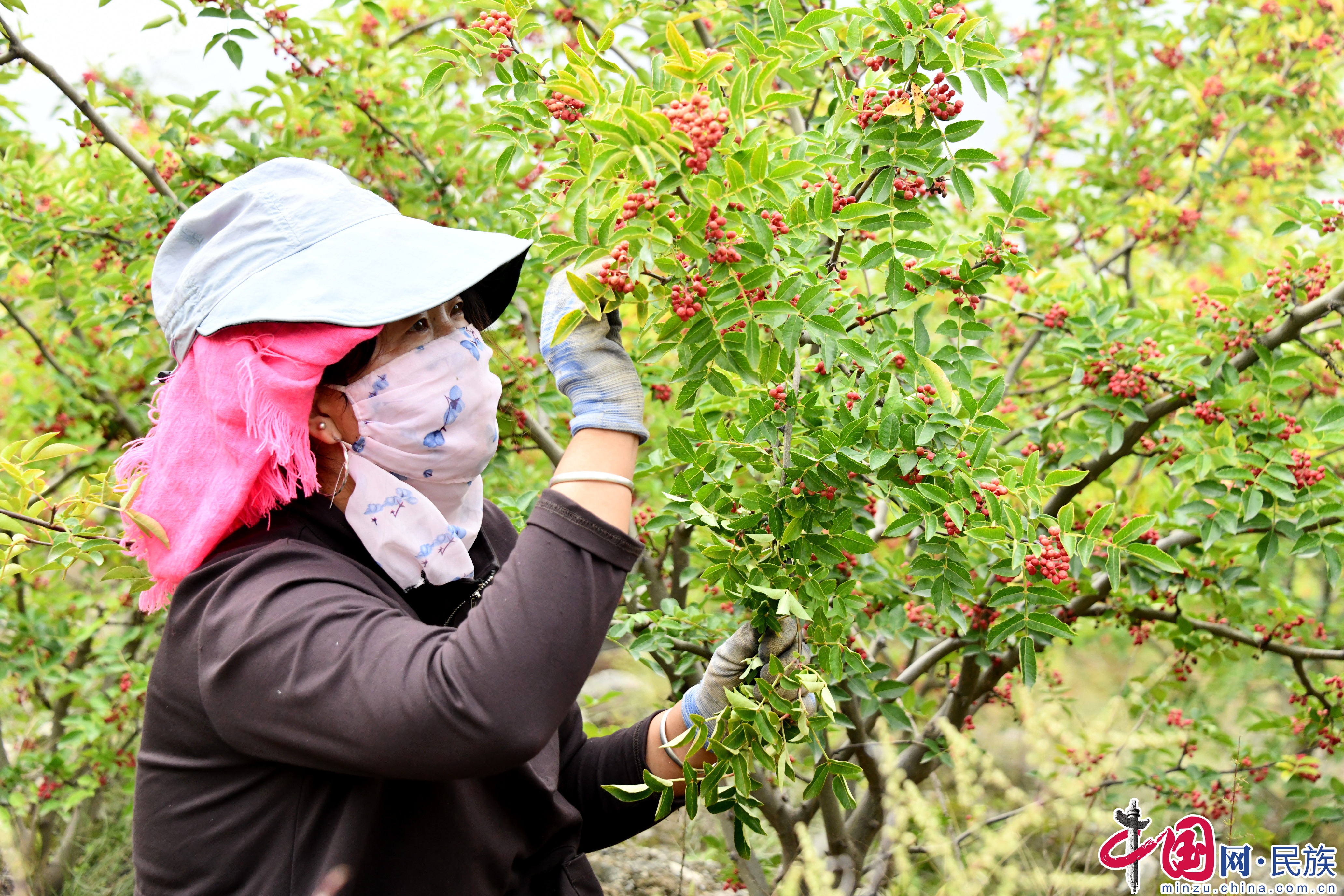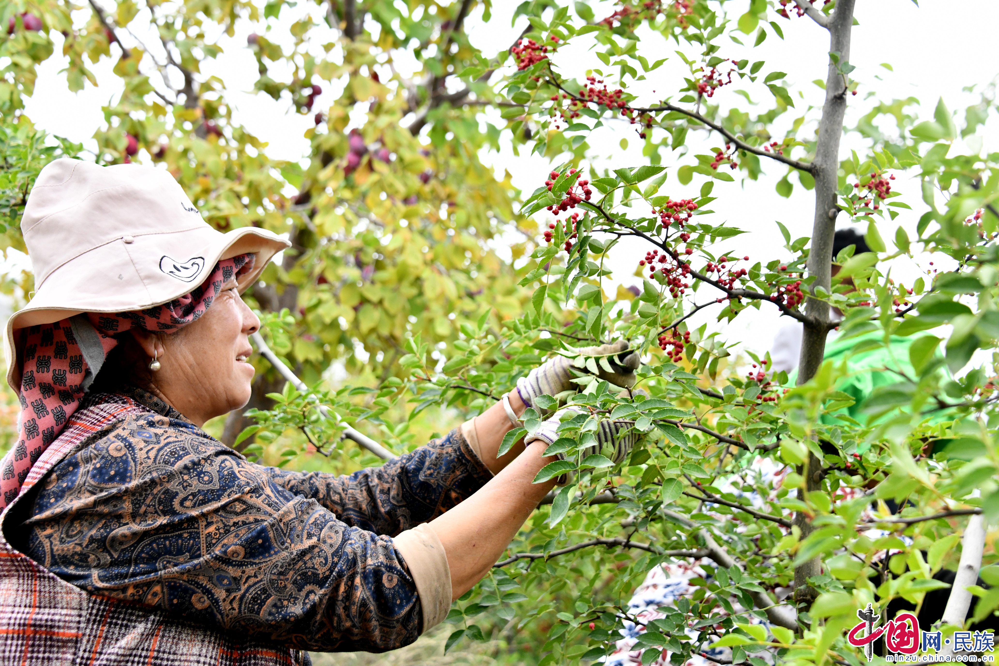 村民正在收獲花椒。蔡得軍攝