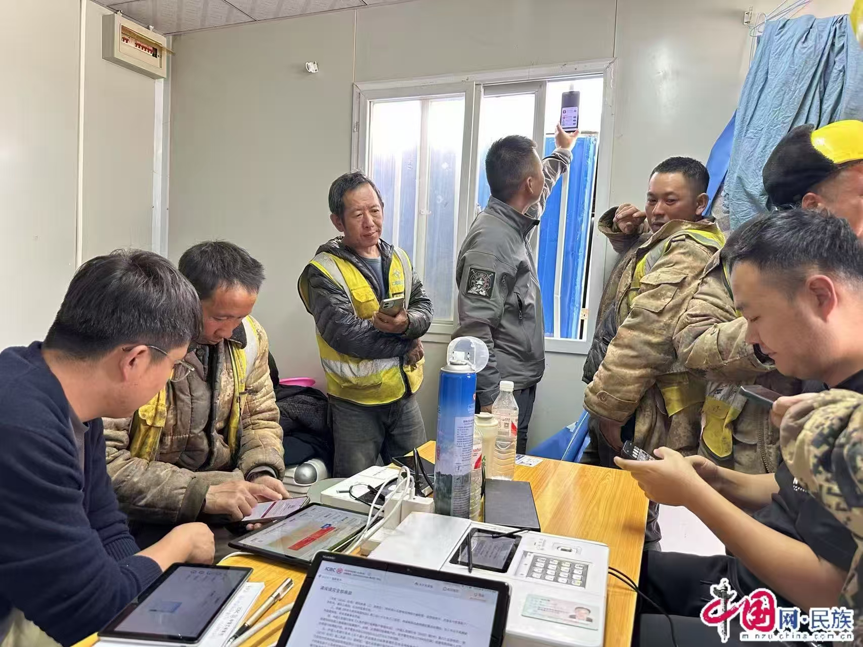 今年七月,支行營業室三名骨干組成的“高原金融服務突擊隊”再次啟程。清晨出發時,高原天氣驟變,冒雨深入高原腹地,車輛行駛在被雨水浸泡的牧區便道上,劇烈顛簸考驗著隊員的筋骨,海拔升高帶來的不適與錯過飯點的饑餓交織,卻始終沒能阻擋他們前進的腳步,并按時抵達服務點。在目標工地的臨時帳篷里,他們迅速支起“移動銀行服務點”——一張簡易折疊桌、幾臺設備,顧不得拍去身上的塵土,也顧不上早已過了午飯時間的饑餓,搓了搓凍得僵硬的手便投入工作。一張張新開的銀行卡,搭建起工地與現代金融的橋梁;“融 e行”“工銀 e生活”的普及,讓數字金融便利扎根高原;“興農通”業務的拓展,為工地發展注入金融活水;新開立的養老金賬戶,為高原人晚年生活增添保障;三方支付綁卡服務,織就起便捷的支付網絡。